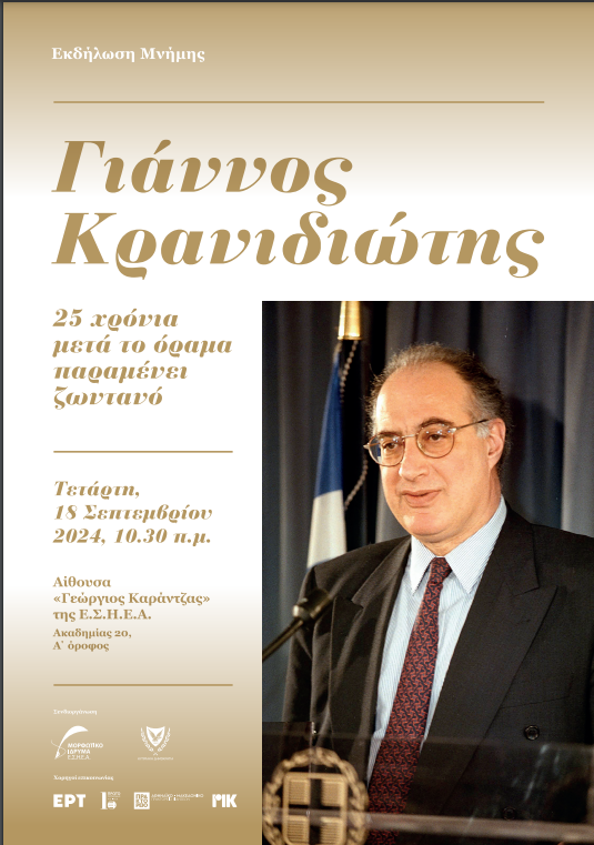 Το Μορφωτικό Ίδρυμα της Ενώσεως Συντακτών Ημερησίων Εφημερίδων Αθηνών και η Πρεσβεία της Κυπριακής Δημοκρατίας στην Αθήνα συνδιοργανώνουν εκδήλωση μνήμης και φόρου τιμής στον Γιάννο Κρανιδιώτη και τους συναδέλφους Νίνα Ασημακοπούλου, Δημήτρη Πανταζόπουλο και Παναγιώτη Πούλο που σκοτώθηκαν στο κυβερνητικό αεροσκάφος.