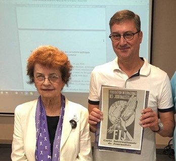 Η Ελληνίδα δημοσιογράφος και συνδικαλίστρια Φανή Πετραλιά απεβίωσε στις 25 Ιανουαρίου 2024. Υπήρξε μία από τις ηγετικές φυσιογνωμίες της ελληνικής ένωσης-μέλους της ΔΟΔ, της ΕΣΗΕΑ και εκπροσώπησε τη χώρα της σε πολλά συνέδρια και διεθνείς συναντήσεις. Συγκεκριμένα, διοργάνωσε το Συνέδριο της ΔΟΔ στην Αθήνα το 2004. Η ΔΟΔ αποτίει φόρο τιμής στη μεγάλη στήριξή της προς την Ομοσπονδία.