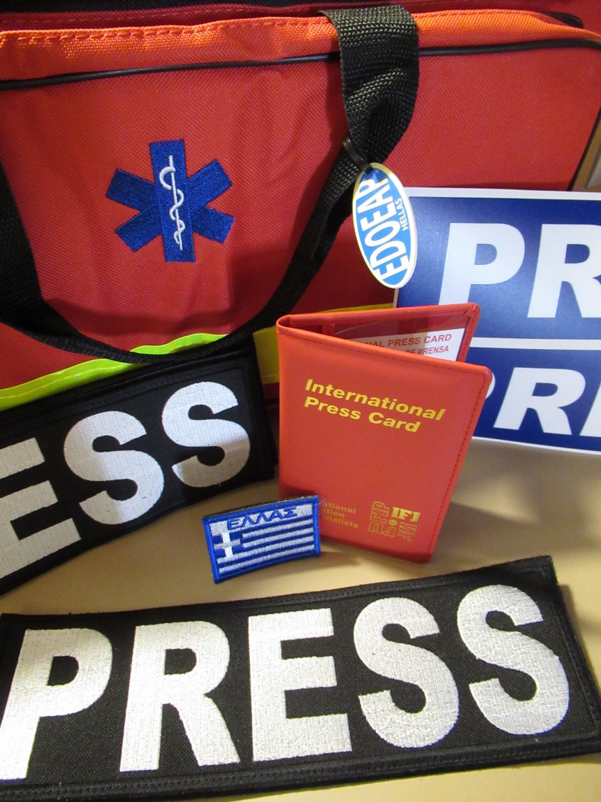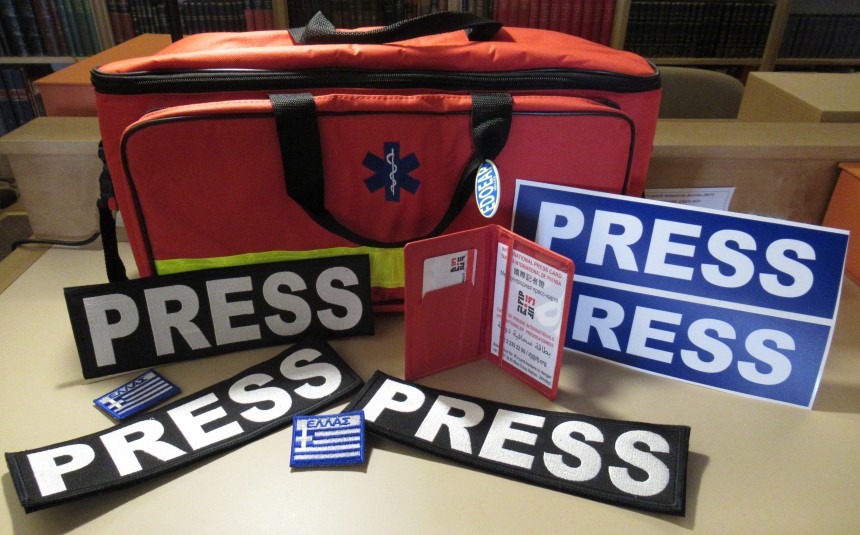 Αυτή τη φορά, μετά από συνεργασία της ΕΣΗΕΑ με τον ΕΔΟΕΑΠ, οι Έλληνες συνάδελφοι που καλύπτουν τις εμπόλεμες συγκρούσεις στη Μέση Ανατολή και διαμένουν σε ξενοδοχεία του Τελ Αβίβ, παρέλαβαν σήμερα ατομικές ιατρικές βαλίτσες (Med kits) που προσέφερε ο ΕΔΟΕΑΠ, με είδη πρώτης ανάγκης σε περίπτωση τραυματισμού, καθώς και διακριτικά σήματα PRESS και ΕΛΛΑΣ, τα οποία, σε συνδυασμό με τον κατάλληλο εξοπλισμό, συμβάλλουν στην προστασία τους και στη διατήρηση της ασφάλειάς τους.